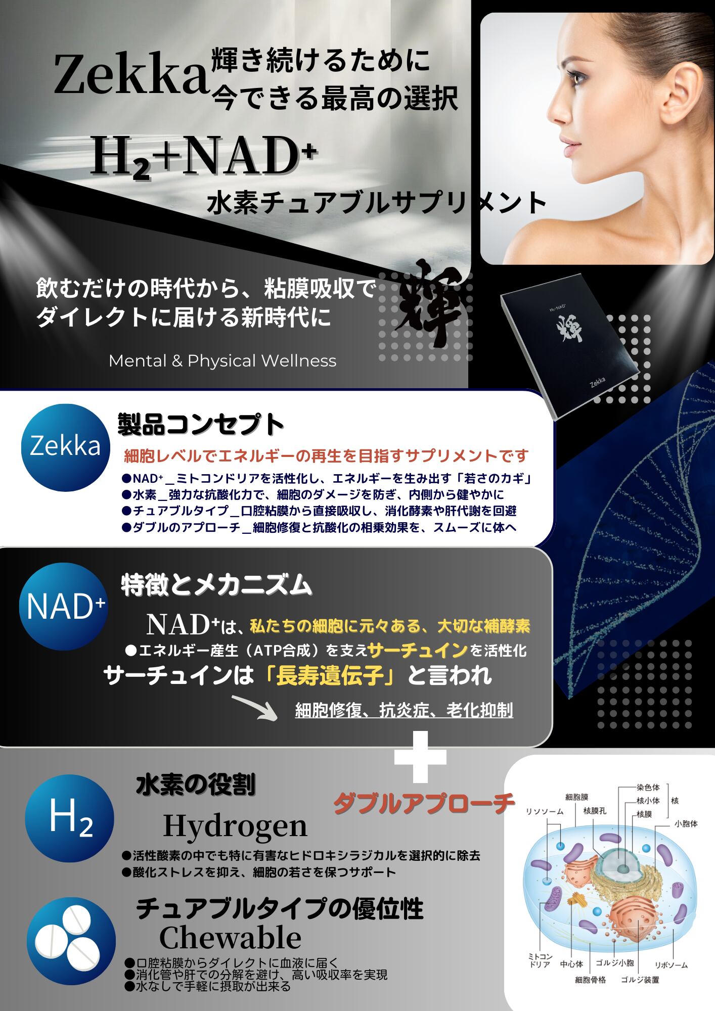 NAD+とH2(水素)のWアプローチで、細胞から若く!