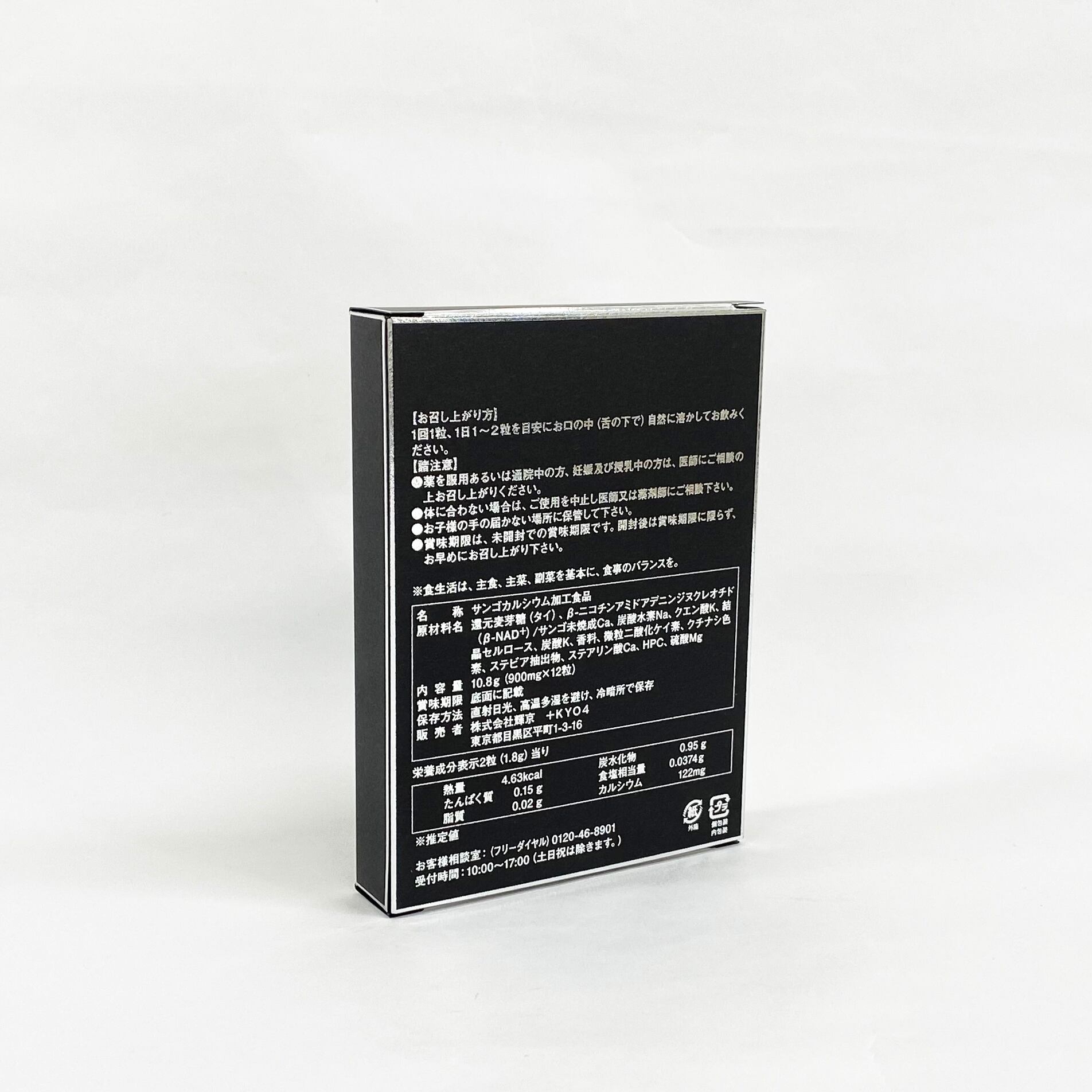 ・原材料名 : 還元麦芽糖(タイ)、β‐ニコチンアミドアデニンジヌクレオチド(β‐NAD⁺)/サンゴ未焼成Ca、炭酸水素Na、クエン酸K、結晶セルロース、炭酸K、香料、微粒二酸化ケイ素、クチナシ色素、ステビア抽出物、ステアリン酸Ca、HPC、硫酸Mg